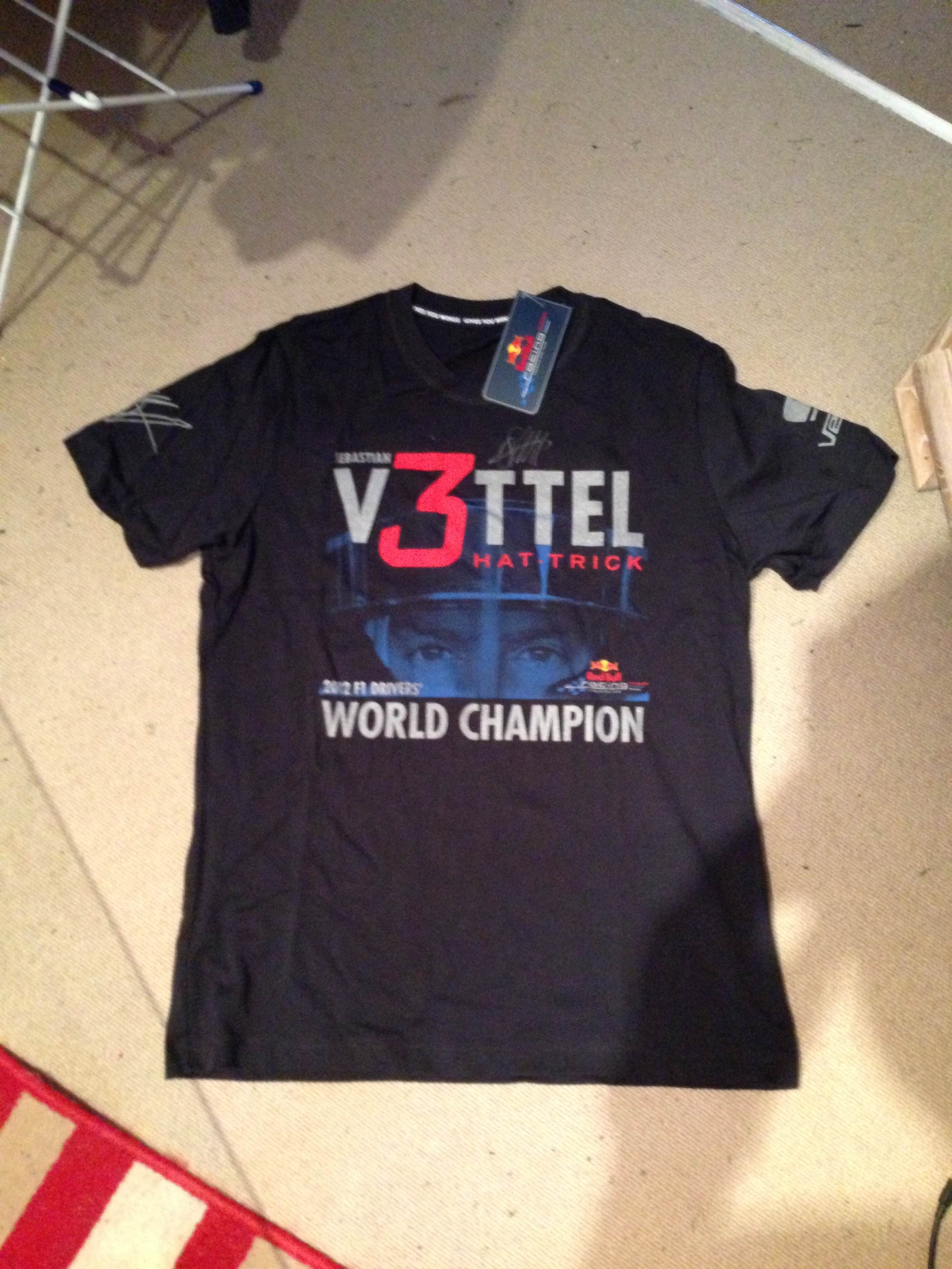 - Signed Sebastian Vettel three-time World Champion Red Bull racing t-shirt